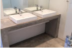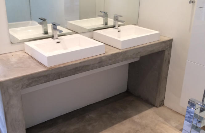 Cast concrete basin pedestal and applied floor screed to structure and sealed