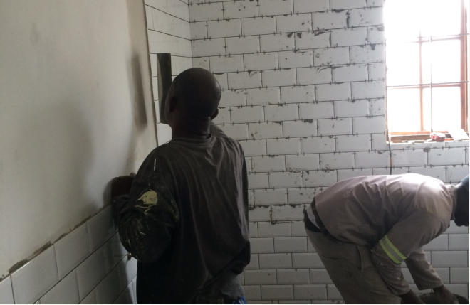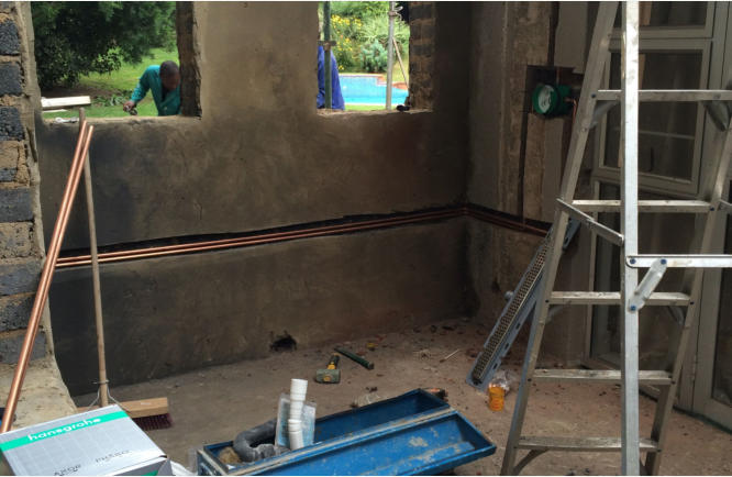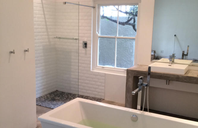 Main en suite bathroom stripped and plumbing changes around to accommodate