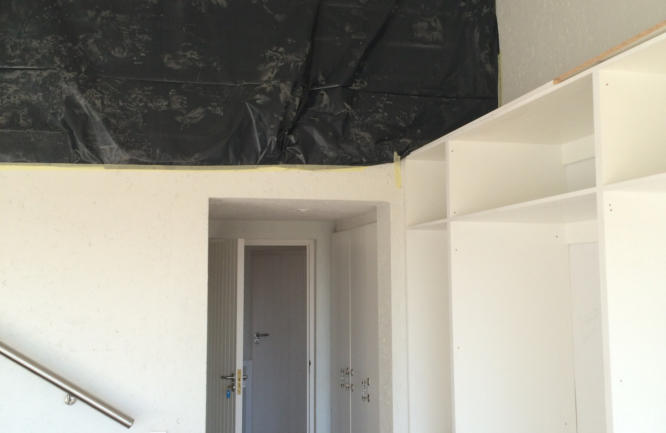 9.5mm Rhino board flush plastered ceiling with Montana moulded cornices