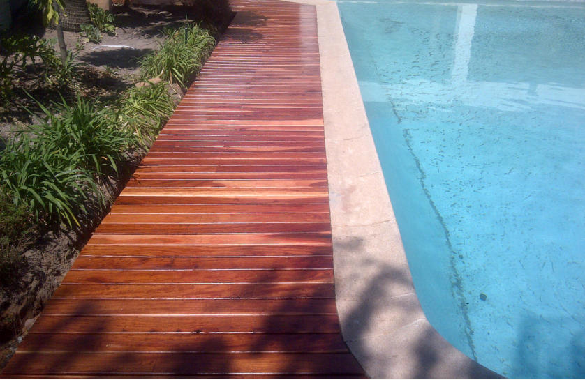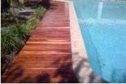 We excavated 400mm deep around the swimming pool, installed the timber