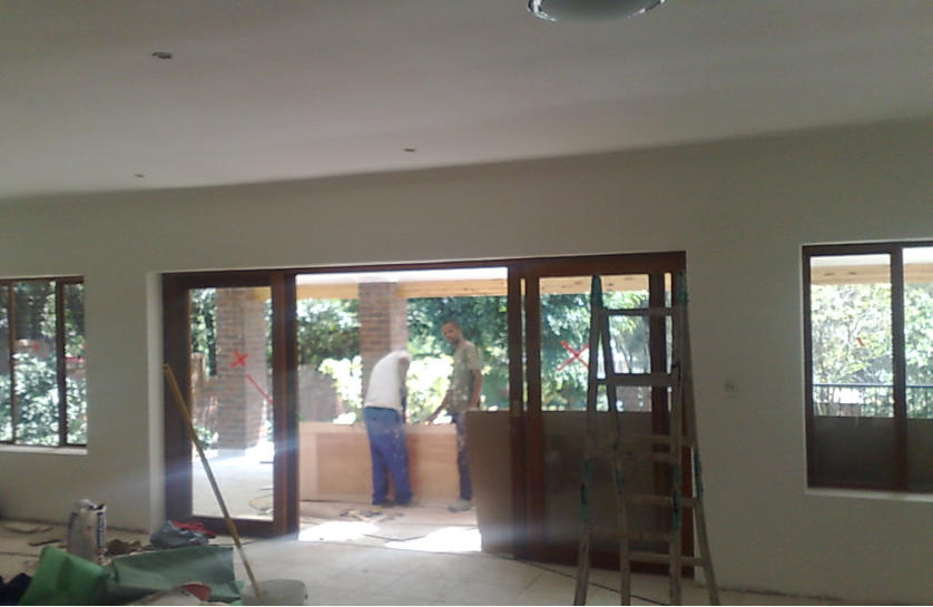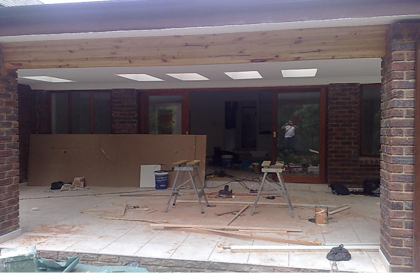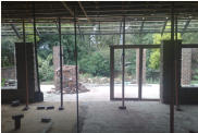 existing roof. We then built in the massive 4 leave wooden sliding doors and